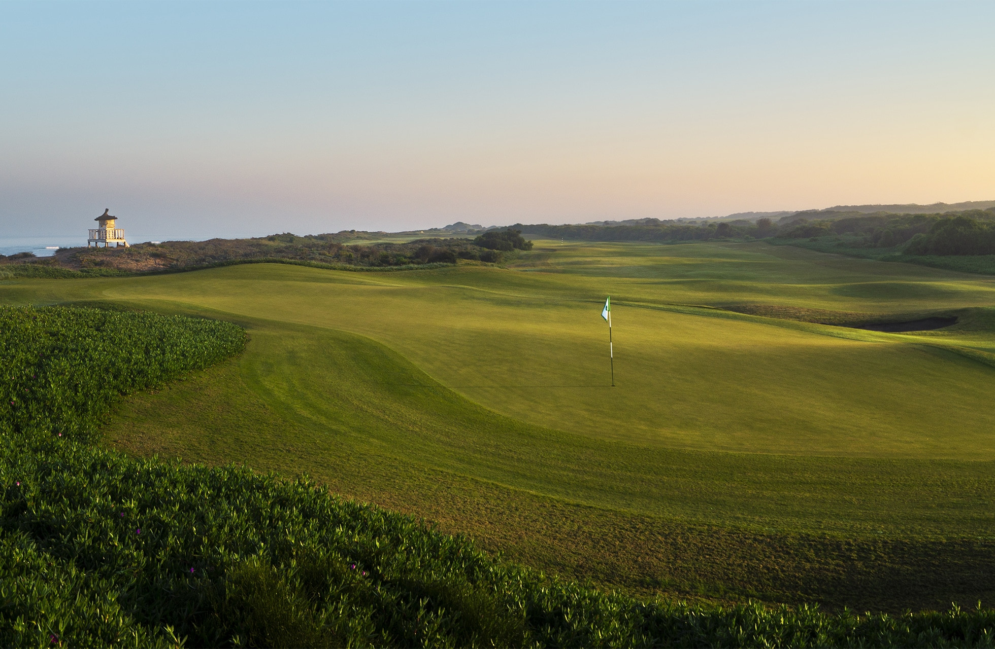 L'un des aspects les plus remarquables du Mazagan est son design, qui permet de jouer au golf tout en étant entouré par la beauté de la nature. Les trois derniers trous du parcours sont particulièrement notables pour leurs vues imprenables sur l’océan, offrant des panoramas spectaculaires qui rendent chaque fin de partie mémorable. Ces trous vous invitent à perfectionner votre swing tout en admirant le spectacle des vagues se brisant contre la côte et le coucher du soleil sur l’horizon marin.