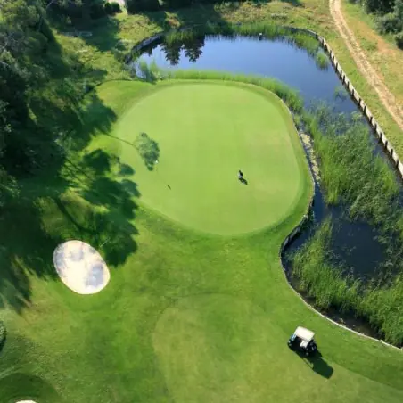 Le Golf Club Provence Verte, situé dans l’arrière-pays varois, s’inscrit dans un décor naturel typiquement méditerranéen : collines boisées, garrigue, pins parasols, chênes verts et roches claires. La lumière provençale, omniprésente, crée une atmosphère chaleureuse et dépaysante. Le site est calme, loin des grandes stations balnéaires, et propose une expérience golfique basée sur la nature, la tranquillité et la qualité du tracé.