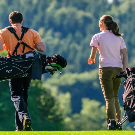 Pour cela nous avons conçu un programme spécialement adapté à l'autonomie parcours. Un mixte parcours / ateliers avec un tiers du temps sur le parcours afin de prendre plaisir tout en progressant et un subtile entraînement du putting au plein swing sur 5 ateliers.