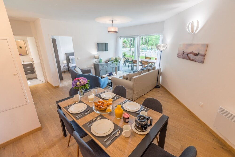 Les chambres et appartements de Les Palmiers du Golf à Moliets sont conçus pour offrir confort et praticité, en particulier pour les familles, les groupes d'amis ou les séjours prolongés. Voici un aperçu plus détaillé des types d'hébergements disponibles :
