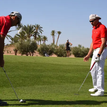 Ce stage golf à Marrakech a été conçu pour les golfeurs souhaitant un accompagnement professionnel de haut niveau, sans contrainte d’hébergement. Vous séjournez librement dans l’hôtel ou le riad de votre choix à Marrakech. Chaque matin, le Pro EGF vous retrouve directement à votre hôtel afin de vous accompagner vers le parcours sélectionné pour la journée. Cette organisation fluide permet de se concentrer uniquement sur le jeu, la progression et le plaisir.