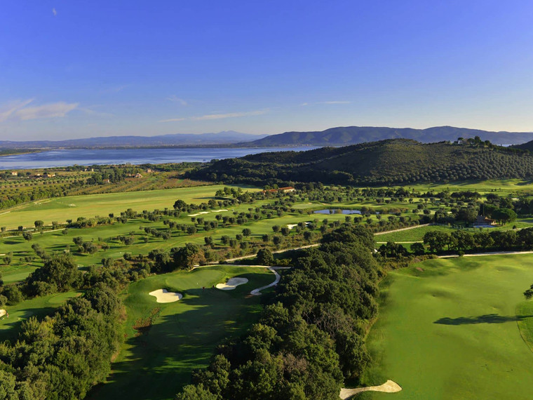 Installé dans une zone protégée entre la lagune d’Orbetello et la Méditerranée, le parcours offre des panoramas incroyables. Vous jouerez au cœur de la végétation méditerranéenne, avec des fairways bordés d’oliveraies et de zones naturelles préservées. Certains trous surplombent la mer ou longent des obstacles d’eau, ajoutant une difficulté stratégique. Conçu par David Mezzacane et Baldovino Dassù, et perfectionné par Brian Jorgensen, le parcours mêle harmonieusement défis techniques et paysages grandioses. Ce microclimat unique permet de profiter du golf tout au long de l’année.