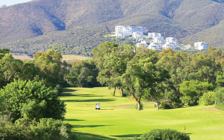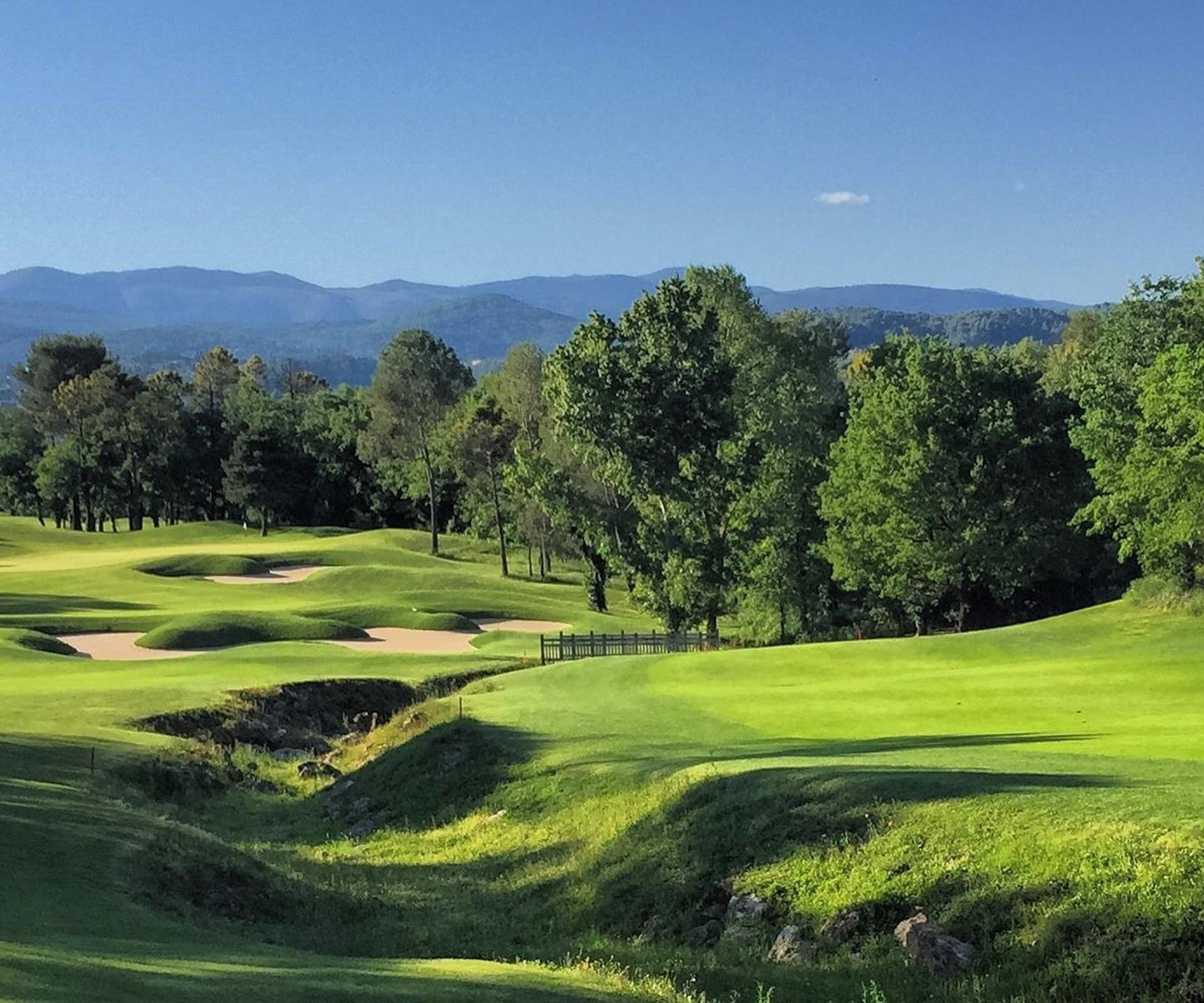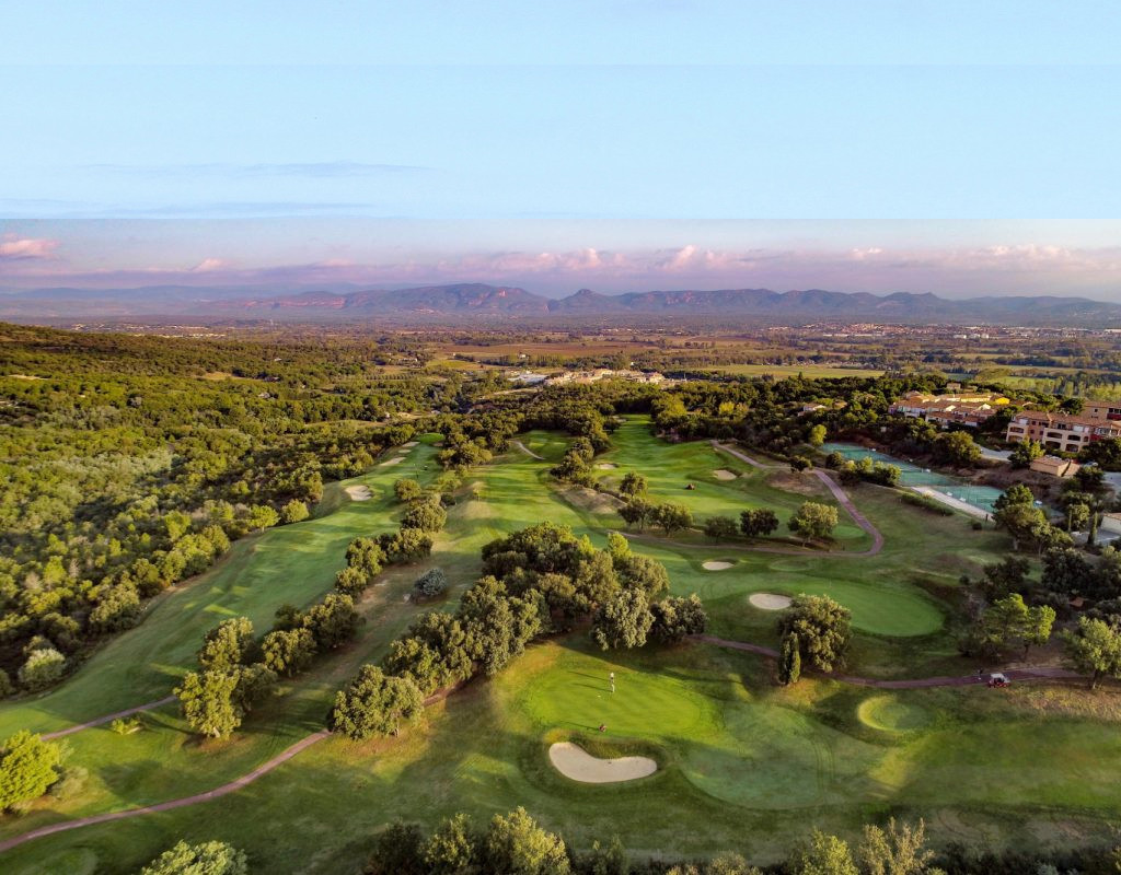 Conçu par Michel Gayon, le parcours s’inscrit dans un environnement naturel préservé où l’olivier, le pin et la vigne s’unissent sous la lumière du Sud. Les fairways ondulés, les greens rapides et les dénivelés subtils confèrent au jeu une dimension stratégique sans jamais sacrifier le plaisir. Le trou signature n°6, un par 4 dominant la baie, est un moment d’émotion pure : un coup d’œil vers la mer avant chaque swing.