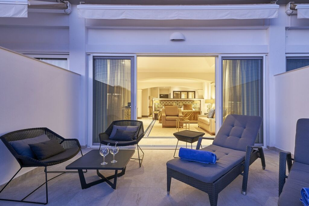 Suite Premium : Dispose d’une ou deux chambres, d’un grand salon avec espace repas, d’une salle de bain en marbre, d’une terrasse ou balcon avec vue sur la mer, minibar et des équipements supplémentaires tels que peignoirs et chaussons.