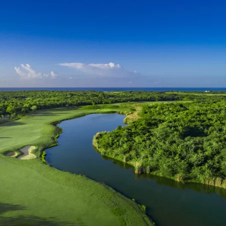 De la vue imprenable sur la mer des Caraïbes aux cascades majestueuses en passant par les paysages verdoyants et les zones de style désertique, ce parcours offre une expérience visuelle et technique incomparable. Avec cinq tees de départ différents, la distance peut être ajustée pour convenir à chaque joueur, tandis que la brise marine ajoute une touche de défi supplémentaire.