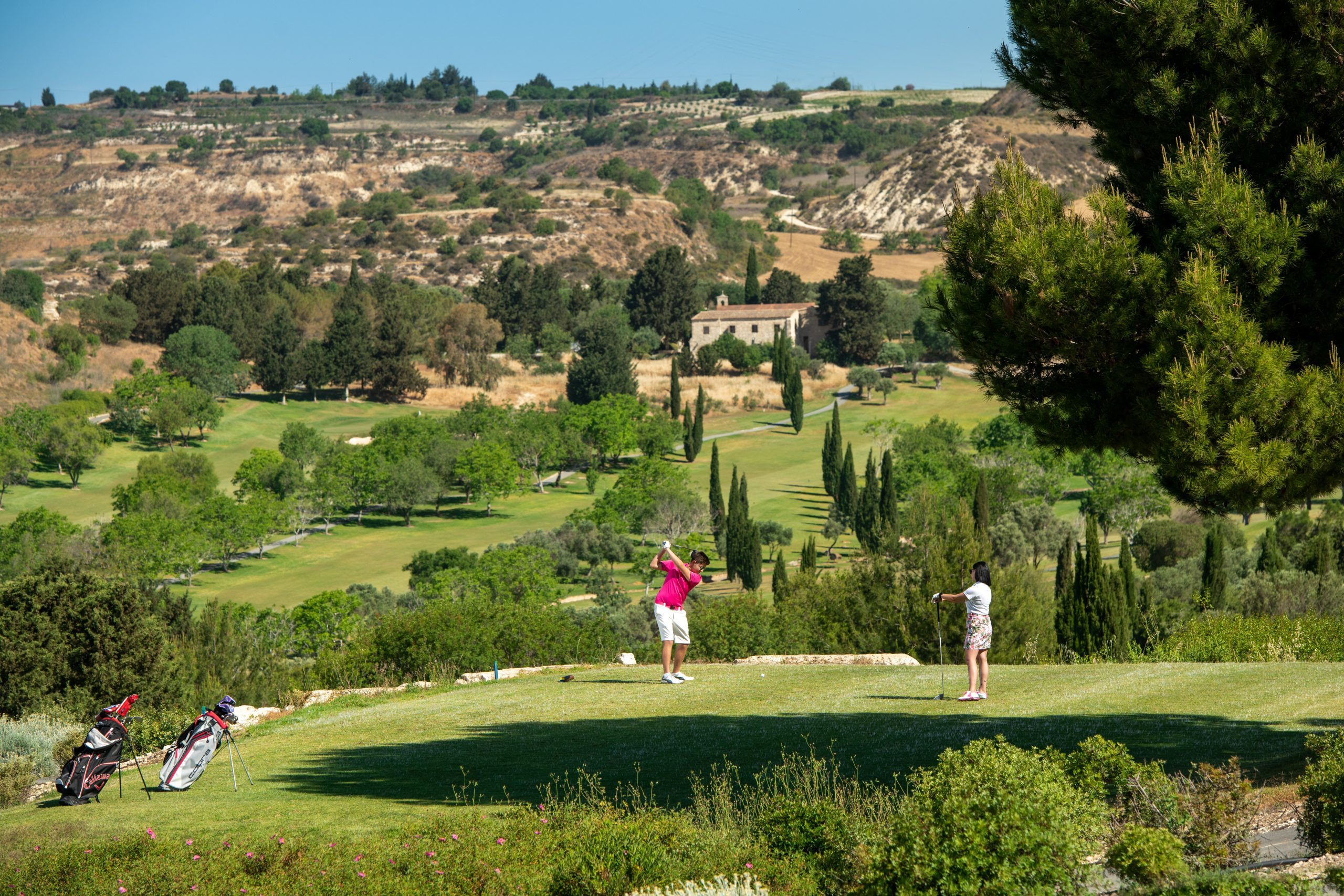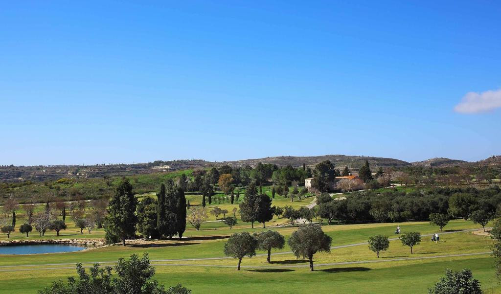 Situé en altitude, le parcours bénéficie d’un climat plus tempéré, très apprécié au printemps et en été. Le décor est marqué par la présence de vignes, d’oliviers centenaires, de pins et de formations rocheuses naturelles. Les vues dégagées sur les collines chypriotes et parfois sur la mer au loin renforcent la sensation d’espace et de liberté. L’atmosphère est calme, élégante et propice à la concentration, loin de l’agitation touristique du littoral.