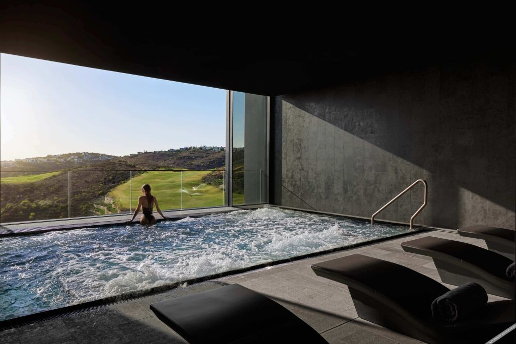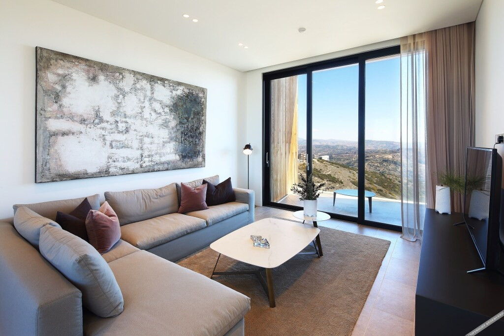 Suites Modernes : Offrant une vue panoramique sur les collines et le parcours de golf, les suites sont spacieuses et décorées avec un style méditerranéen moderne, avec des finitions en pierre et en bois naturel.