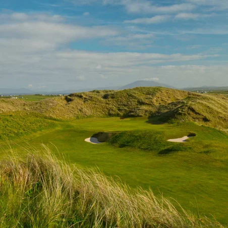 Carne Golf Links est une expérience à part dans le paysage golfique irlandais. Ici, le golf se joue dans un environnement totalement brut, façonné par des dunes monumentales et l’influence permanente de l’Atlantique. Le tracé original d’Eddie Hackett est un chef-d’œuvre de golf naturel, exigeant créativité, engagement et humilité. Chaque trou est unique, parfois déroutant, mais toujours mémorable. Les panoramas spectaculaires, l’isolement du site et l’authenticité de l’expérience font de Carne un incontournable absolu pour les puristes et les amateurs de links extrêmes. Un parcours qui marque durablement tout golfeur qui le découvre.