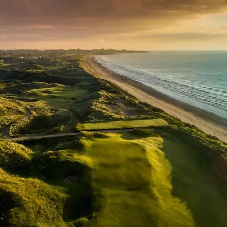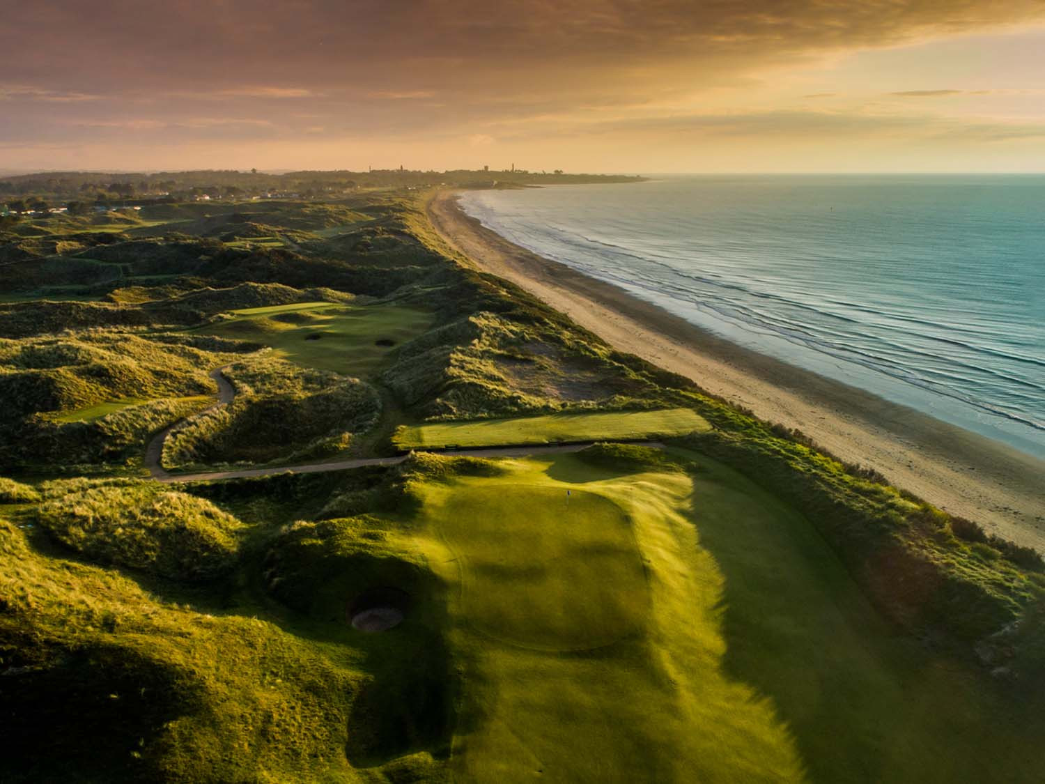 Le parcours du Island Golf Club est bordé par la mer sur trois côtés, offrant des vues spectaculaires sur l’océan Atlantique et un cadre unique entre les dunes de sable les plus imposantes de la côte est de l’Irlande. Les paysages accidentés et les dunes hautes ajoutent une dimension de beauté sauvage et d'authenticité à ce parcours classique de type links.
