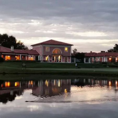 Le complexe, comprenant deux parcours de 18 trous chacun (Del Conte et Bonora), il s'étend sur un terrain vallonné offrant des vues panoramiques sur les collines environnantes et les Alpes au loin. Chaque parcours présente des défis uniques, avec des fairways soigneusement entretenus, des obstacles stratégiquement placés et des greens impeccables, créant ainsi une expérience diversifiée.