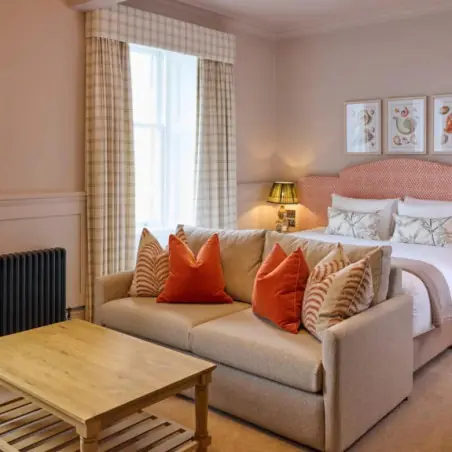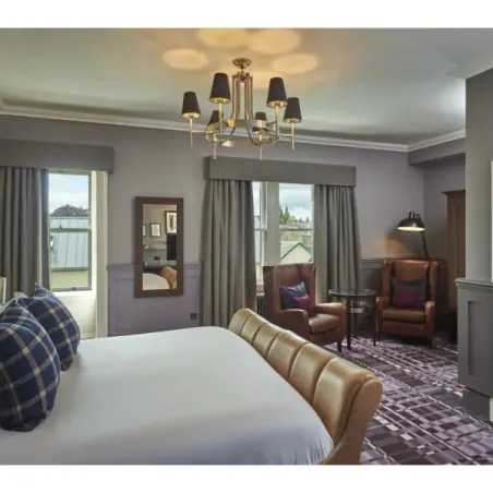 L’hôtel propose 36 chambres et suites à la décoration soignée, mêlant tissus écossais, mobilier ancien et touches modernes. Certaines offrent une vue imprenable sur le front de mer ou le mythique 18e trou de l’Old Course. Le confort est au rendez-vous avec literie haut de gamme, salles de bains en marbre et prestations personnalisées, dans une ambiance feutrée propice à la détente après une journée sur les greens.