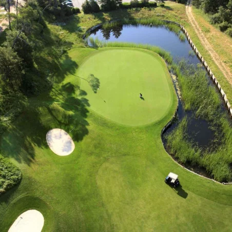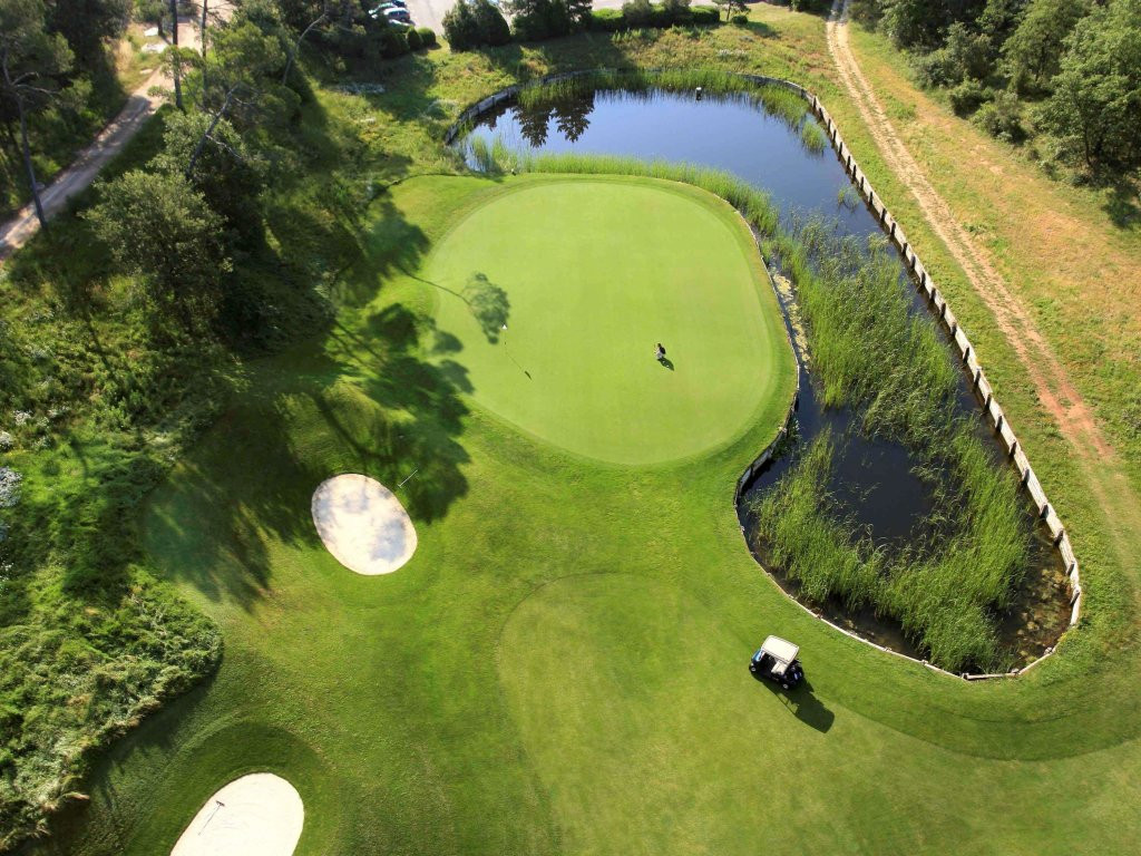 Réalisé dans la plus pure tradition du golf américain par les architectes Pete Dye et PB Dye, chaque espace, chaque plan d’eau, est une véritable ode à la créativité, alliant l’amour de la nature à la fantaisie technique. L'agencement de ce lieu en fait un golf de Côte d'Azur très prisé. Approche sur des greens techniques, mouvementés, très rapides.