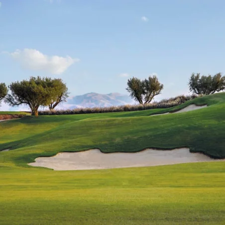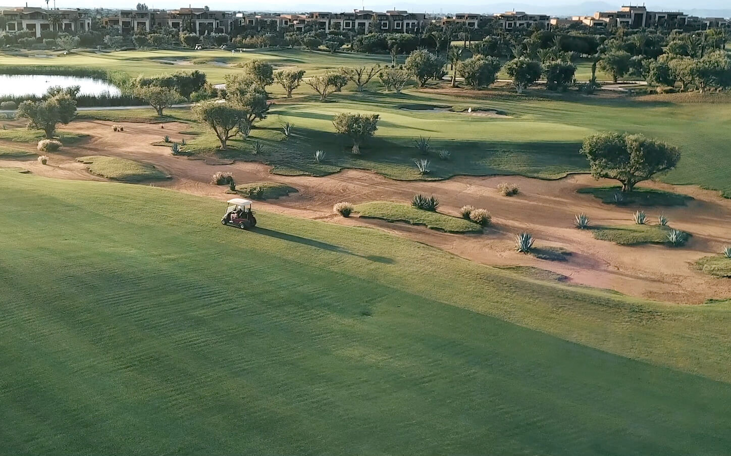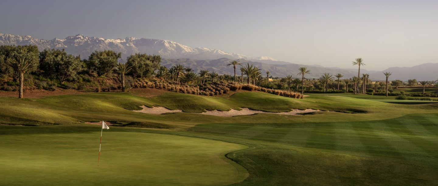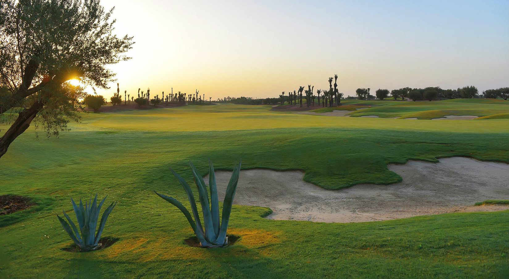 Le parcours a été conçu par l'architecte américain renommé Cabell B. Robinson. Son approche respectueuse de l'environnement et du paysage local est évidente dans chaque détail du parcours. Robinson a pris en compte la rivière Wadi qui traverse la région, chaque arbre et chaque colline, intégrant les formes et les teintes naturelles pour créer un parcours harmonieux bordé de bougainvilliers et de lauriers-roses. Les rayons chauds du soleil couchant apportent une touche finale à cette image parfaite du Maroc authentique.