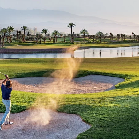 Km 12 Route d'Amizmiz, BP 2470, Tameslouht - 24700 - MarocLe Fairmont Royal Palm Marrakech est un hôtel 5 étoiles de luxe situé dans un cadre exceptionnel à la périphérie de Marrakech. Avec son propre parcours de golf de 18 trous, ce complexe est une destination idéale pour les golfeurs qui souhaitent profiter de leur sport favori tout en séjournant dans un établissement prestigieux. L’hôtel, entouré de vastes jardins et offrant des vues spectaculaires sur les montagnes de l’Atlas, combine élégance moderne et hospitalité marocaine. Voici un aperçu détaillé de ce que le Fairmont Royal Palm Marrakech propose aux golfeurs.