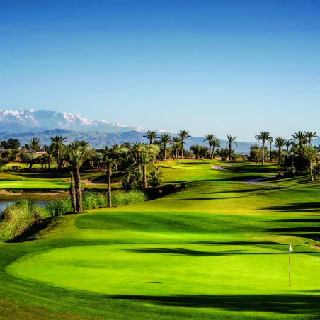 Situé dans un cadre exceptionnel avec les majestueux contreforts des montagnes de l'Atlas en toile de fond, le Fairmont Royal Palm Golf & Country Club est un havre de luxe et de tranquillité. Ce parcours de golf de 18 trous, couvrant 75 hectares, offre une immersion totale dans la nature, créant une expérience unique pour les amateurs de golf.