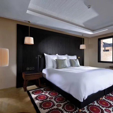 Les chambres, suites et villas du Fairmont Royal Palm Marrakech sont décorées avec élégance dans un style marocain moderne, utilisant des matériaux nobles comme le marbre, la pierre ou le bois. Spacieuses et lumineuses, elles offrent toutes une vue dégagée sur le golf, les jardins ou les montagnes. Les chambres Deluxe disposent de terrasses privées, les suites Junior ajoutent un coin salon confortable, et les villas privées proposent plusieurs chambres, piscine et jardin pour un séjour en toute intimité.