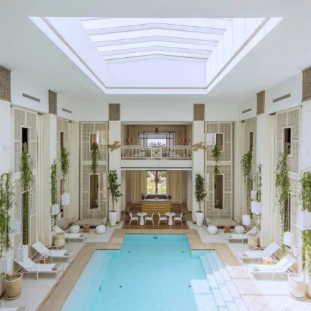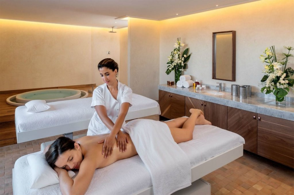 Le spa Fairmont Royal Palm s’étend sur 3 500 m² et propose une large palette de soins inspirés des traditions marocaines. Les installations comprennent un hammam traditionnel, une piscine intérieure chauffée, un sauna, une salle de fitness et des cabines de soins. Des massages, enveloppements corporels, soins du visage et rituels de beauté sont réalisés avec des produits naturels comme l’huile d’argan ou le rhassoul, pour un moment de bien-être complet.