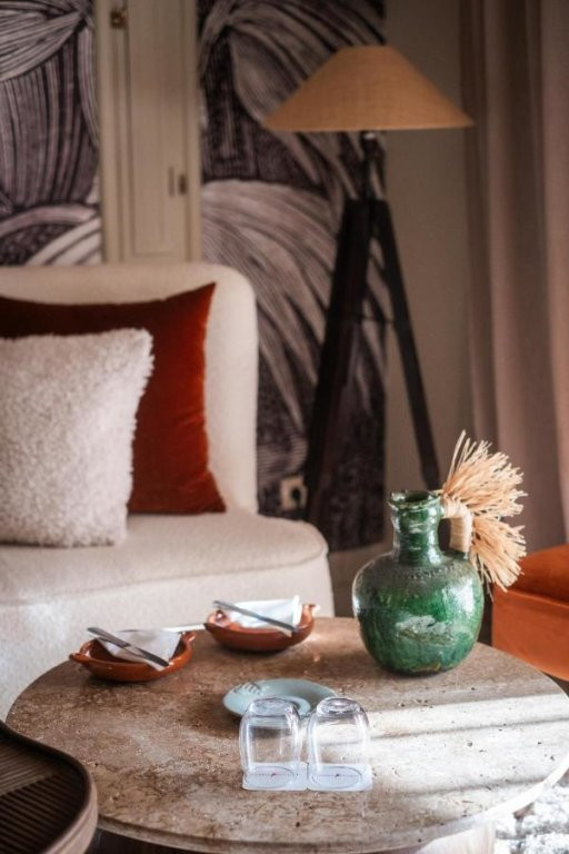 - Le Domaine des Remparts propose des suites spacieuses et des villas privées, décorées dans un style marocain authentique avec des matériaux naturels, des couleurs chaudes, et des détails artisanaux. Les suites et villas sont entourées de jardins luxuriants, offrant une vue sur les montagnes de l’Atlas ou sur le jardin.