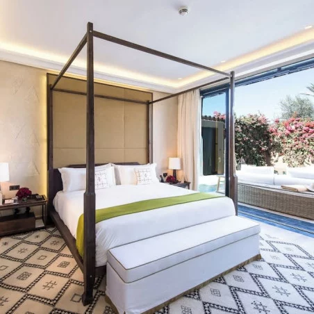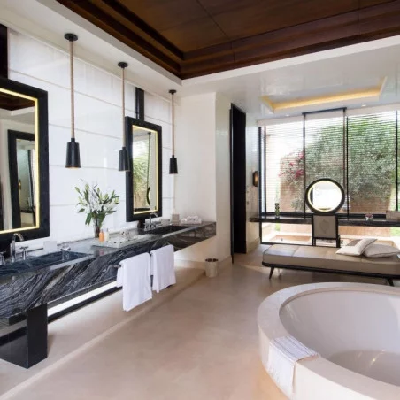 Le Mandarin Oriental Marrakech incarne l'élégance et le luxe dans un cadre intime et serein, offrant des villas spacieuses avec piscines privées, jardins clos et salons extérieurs, parfaites pour un séjour privilégié en toute tranquillité. Chaque villa et suite allie confort moderne et raffinement avec climatisation, Wi-Fi gratuit, télévision, mini-bar, et des salles de bains luxueuses équipées de baignoires et de douches à effet pluie, garantissant une expérience d’hébergement haut de gamme au cœur d’un environnement privé et apaisant.