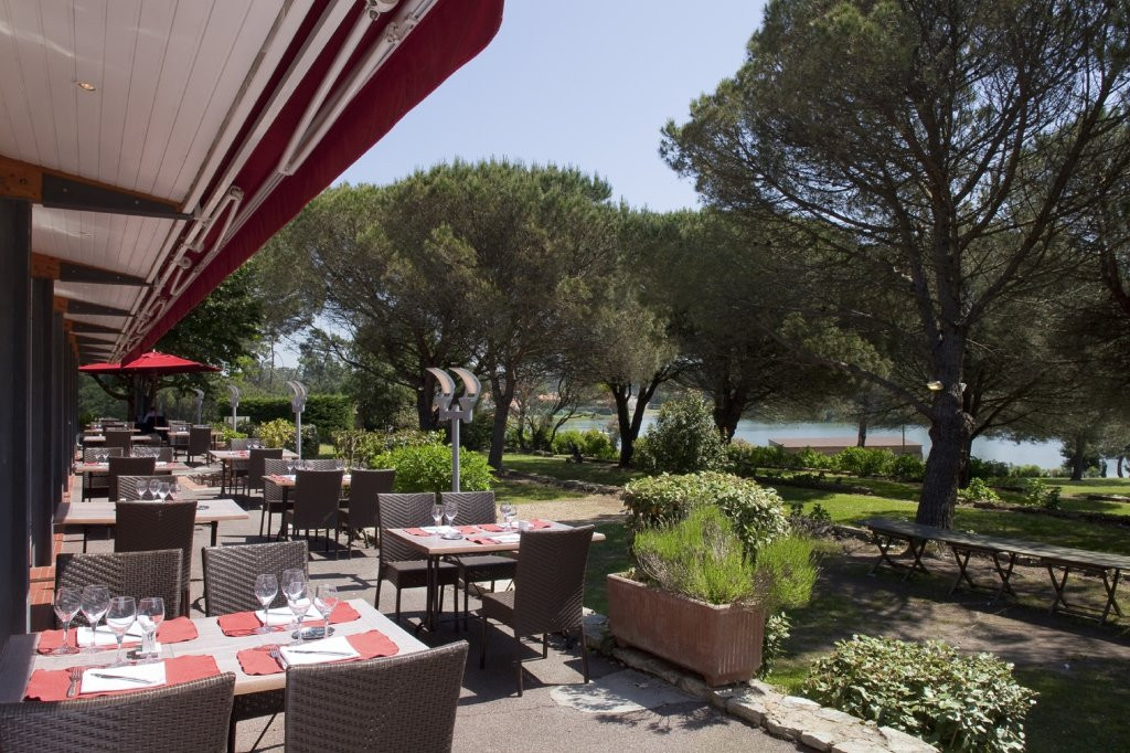 Restaurant gastronomique : Le restaurant de l'hôtel propose une cuisine de saison et régionale, mettant en avant les saveurs basques. La salle de restaurant, ouverte sur une terrasse avec vue sur le golf, permet de savourer des repas dans un cadre apaisant.