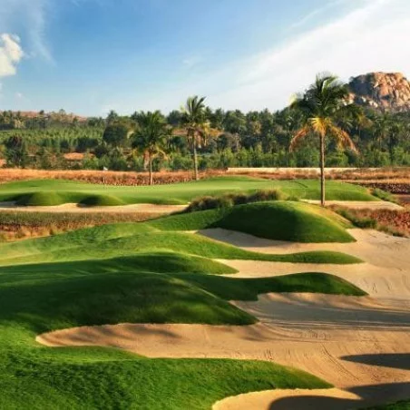 Le Prestige Golfshire est une destination prestigieuse pour les amateurs de golf, située à Nandi Hills, dans l'état du Karnataka, en Inde. Niché au cœur des collines verdoyantes, ce parcours de golf de 18 trous offre une expérience golfique de classe mondiale, alliant beauté naturelle et défis passionnants.