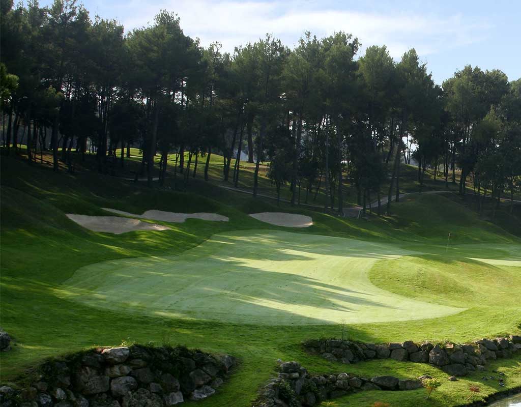 Le parcours est encadré par une végétation méditerranéenne luxuriante, offrant des vues panoramiques sur les collines environnantes et la mer Méditerranée au loin. Chaque trou offre une expérience unique, que ce soit en termes de paysage ou de défi, garantissant une partie de golf inoubliable à chaque visiteur.