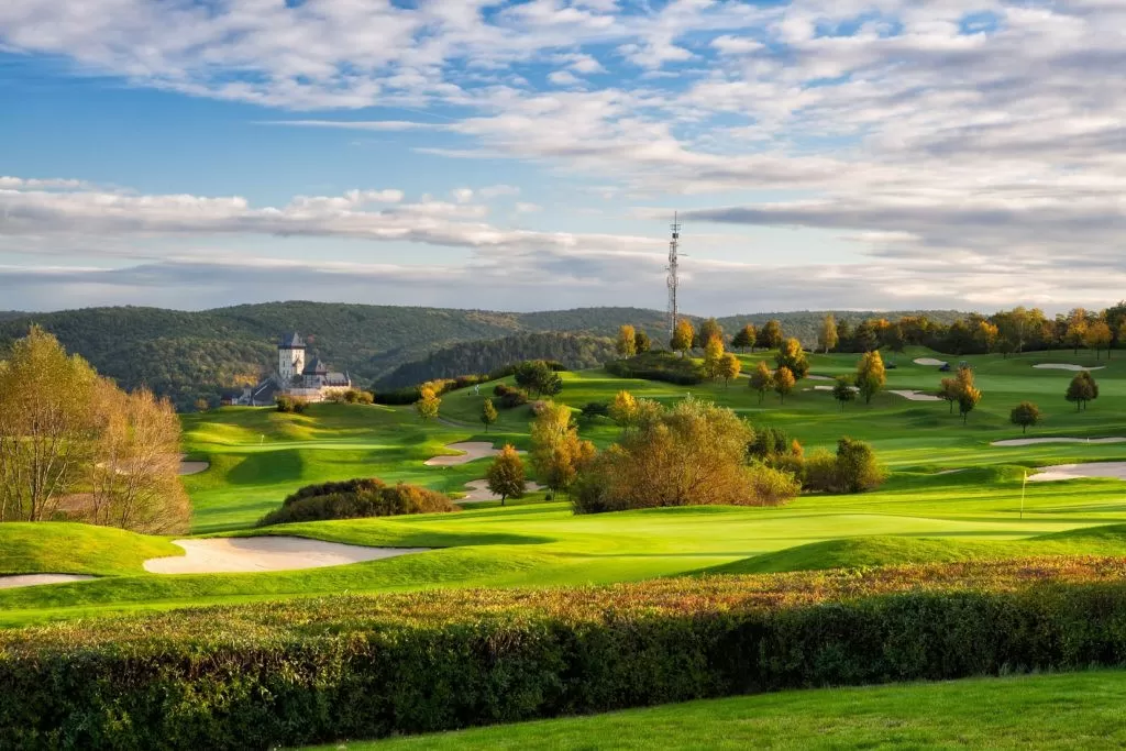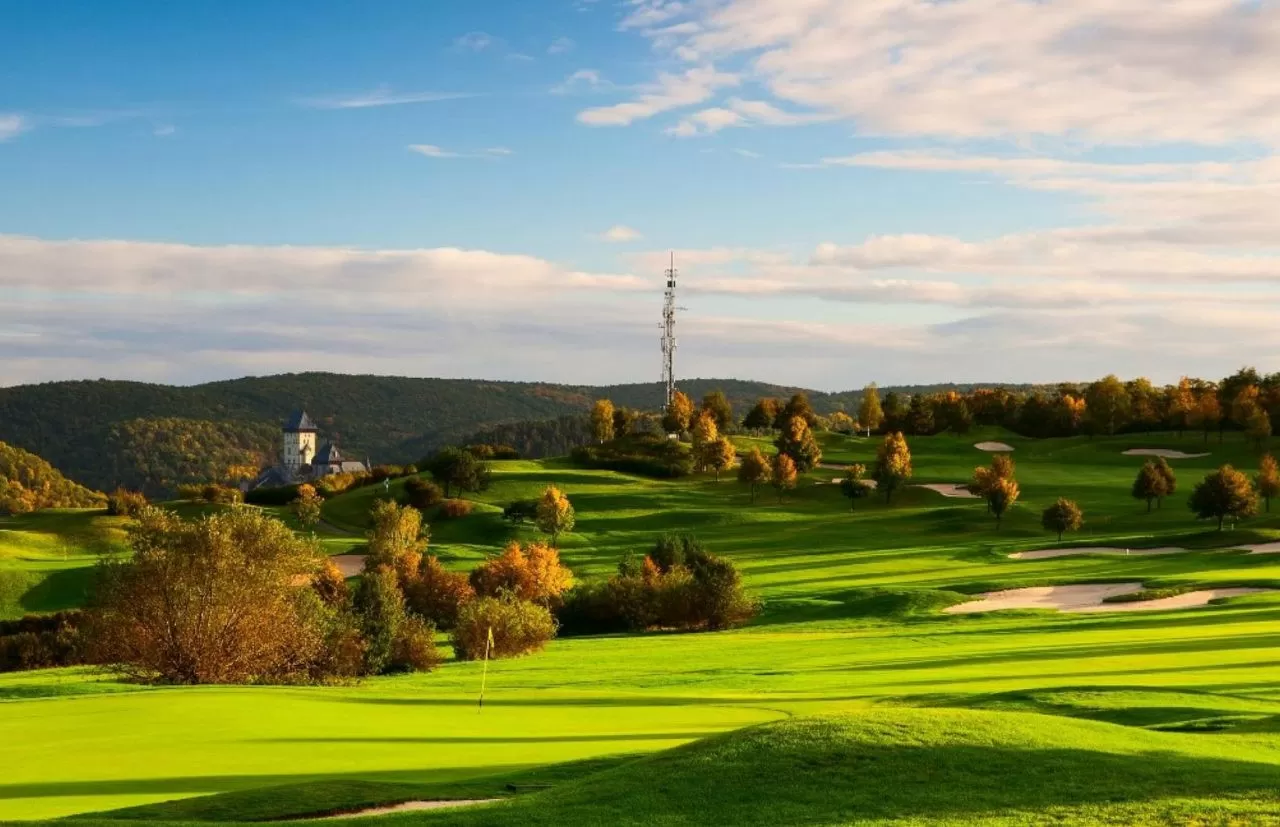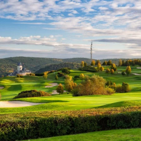 Le Golf Resort Karlštejn, situé en Bohême centrale, à environ 30 km de Prague, est l’un des golfs les plus prestigieux de République tchèque. Inauguré en 1993, il a accueilli de nombreuses compétitions internationales et attire aussi bien les golfeurs amateurs que les professionnels. Son parcours 27 trous, divisé en trois boucles de 9 trous (A, B et C), offre une expérience de jeu exceptionnelle dans un cadre naturel spectaculaire, avec une vue imprenable sur le célèbre château de Karlštejn, un des monuments historiques les plus emblématiques du pays.