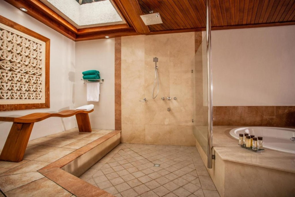 - Le spa comprend des salles de soins intérieures et extérieures, ainsi qu'un hammam, un sauna, une piscine de relaxation, et un espace de repos pour se ressourcer.