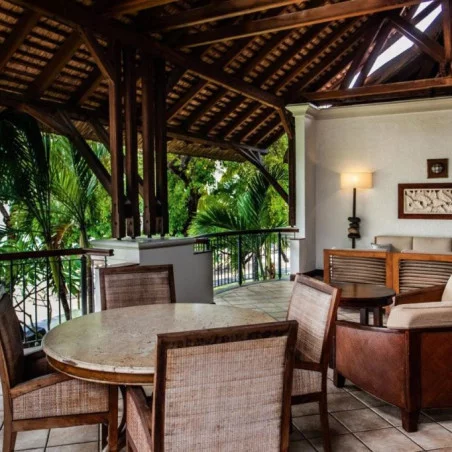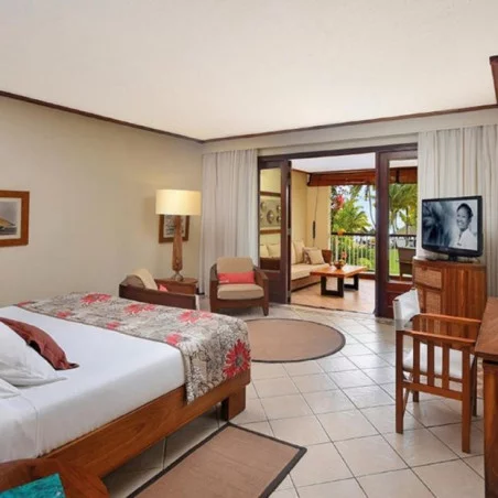 - Les chambres supérieures et luxury suites sont décorées dans un style tropical élégant avec des matériaux naturels et des touches mauriciennes. Elles sont spacieuses, avec des terrasses ou balcons privés, la climatisation, des salles de bains modernes, et des équipements haut de gamme comme une connexion Wi-Fi, des télévisions à écran plat et des mini-bars.