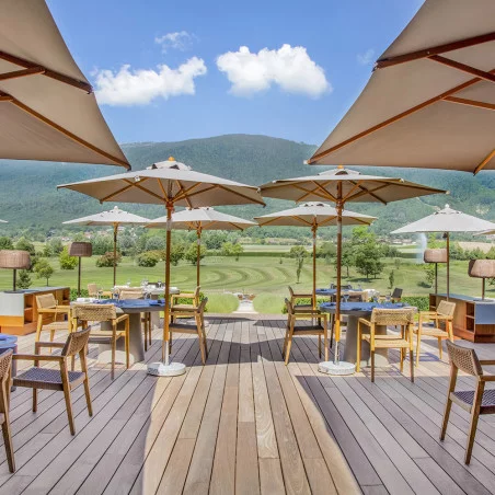 Ce qui rend le Jiva Hill Golf Club encore plus unique, c'est son choix audacieux d'utiliser des départs et des greens en synthétique. En tant que précurseur dans ce domaine, il est le premier terrain de 9 trous avec greens synthétiques en Europe, homologué par la FFGolf. Cette innovation permet de maintenir une qualité de jeu optimale même pendant les mois d'hiver.