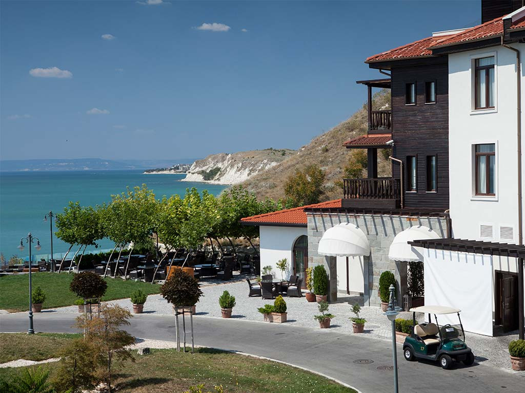 Suites et Appartements : Les hébergements du Thracian Cliffs sont situés dans deux villages – le Marina Village et le Hillside Village. Les suites et appartements de luxe sont spacieux et élégants, avec des vues panoramiques sur la mer Noire, les falaises, ou le parcours de golf.