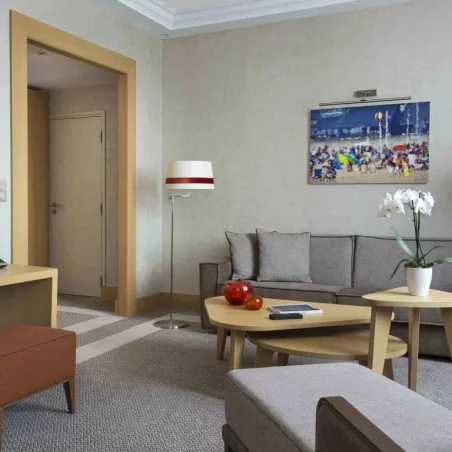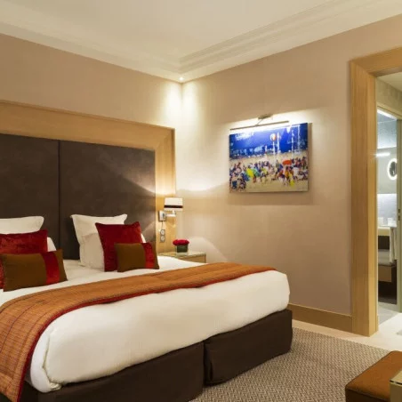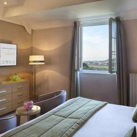 Chambres et suites luxueuses : Les chambres, décorées avec goût, offrent une vue sur le parcours de golf ou la mer. Elles sont dotées de literie de haute qualité, d’équipements modernes, et de salles de bains spacieuses.