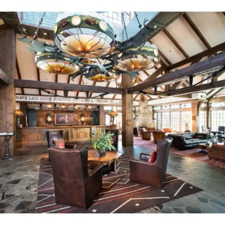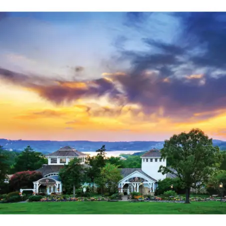 Le resort se situe au milieu des paysages spectaculaires des montagnes des Ozarks, offrant un environnement paisible et totalement dépaysant. Bordé par les eaux claires de Table Rock Lake, le resort s’inspire des grands lodges nord-américains avec une architecture boisée, chaleureuse et élégante. L’atmosphère rustique chic crée un sentiment d’évasion immédiat, tout en préservant un haut niveau de confort et de services. Les clients profitent d’hébergements variés allant des chambres cosy aux cottages indépendants et lodges panoramiques, chacun doté d’équipements modernes et d’un charme naturel authentique.
