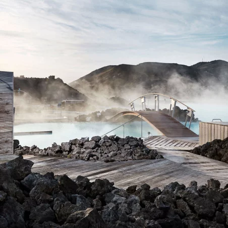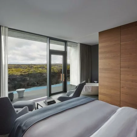 Vous séjournerez au The Retreat at Blue Lagoon, un hôtel 5 étoiles d'exception réservé en exclusivité par l'équipe EGF. Ce complexe de luxe primé propose 60 suites élégantes, un spa souterrain raffiné, un restaurant étoilé au guide Michelin, et un lagon privé aux eaux géothermiques curatives. S'écoulant de la même source que le Blue Lagoon, ce lagon riche en minéraux offre une vue unique sur le bien-être et la relaxation.