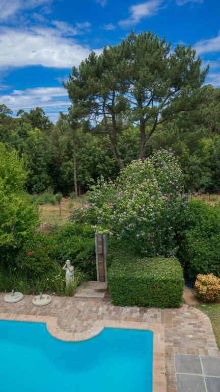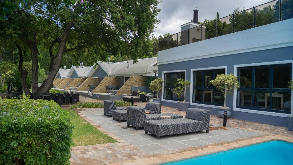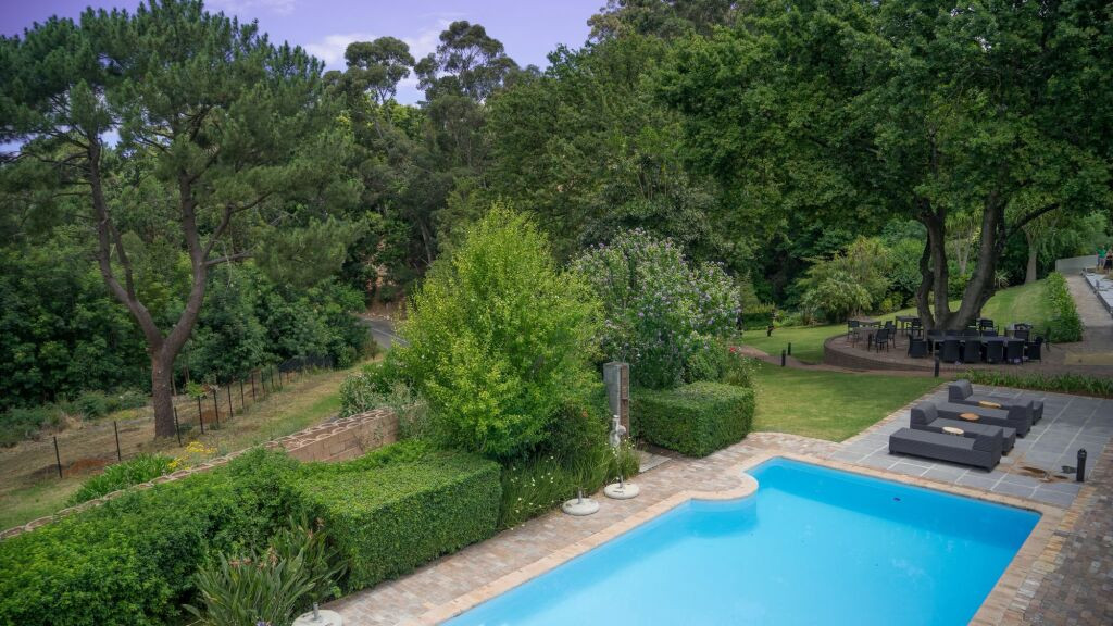 - Une piscine extérieure entourée de chaises longues et de végétation luxuriante offre un espace tranquille pour se détendre sous le soleil sud-africain. Le cadre naturel et les jardins sont parfaits pour se ressourcer.
