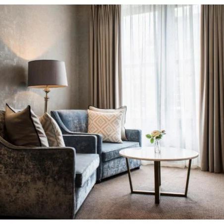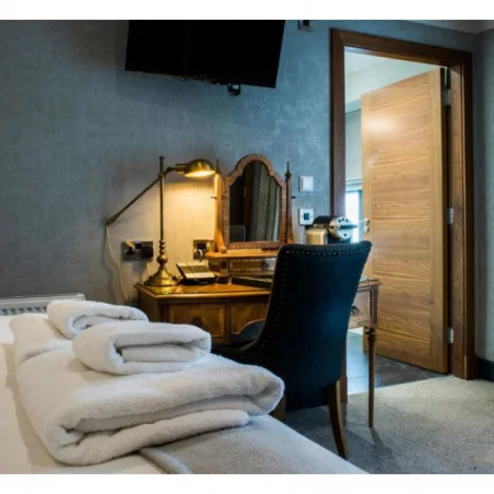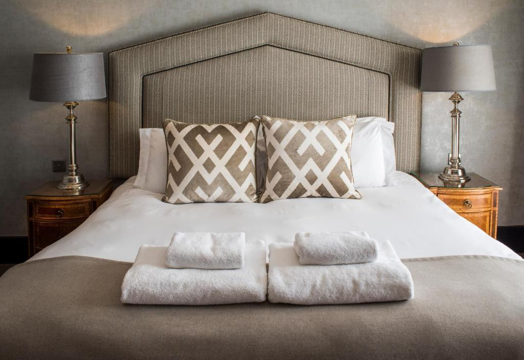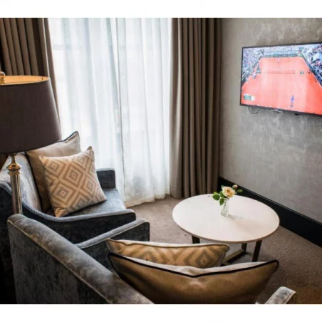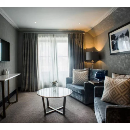 Suites Supérieures (environ 60 m²) : salon indépendant, dressing, salle de bains avec baignoire, douche à effet pluie, double vasque, et vue sur le centre historique de St Andrews dans certaines suites.