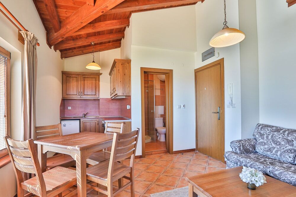 Les appartements du Pirin Golf & Country Club offrent une expérience de séjour pratique et luxueuse pour les golfeurs. Ils sont entièrement équipés et décorés dans un style moderne et élégant, tout en intégrant des touches de bois et de pierre, pour rappeler l’authenticité et l’élégance des chalets alpins.