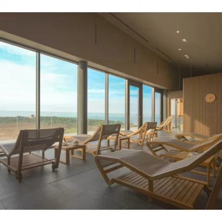 Piscine Intérieure et Hammam : Le spa dispose d’une piscine intérieure chauffée, d’un hammam, et de salles de relaxation, parfait pour une journée de détente.