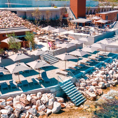 Accès à la Plage Privée : Pour les séjours balnéaires, une plage privée est aménagée avec des chaises longues, des parasols, et un service de boissons pour les résidents.