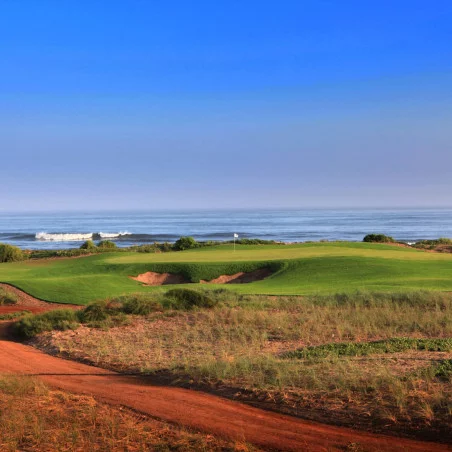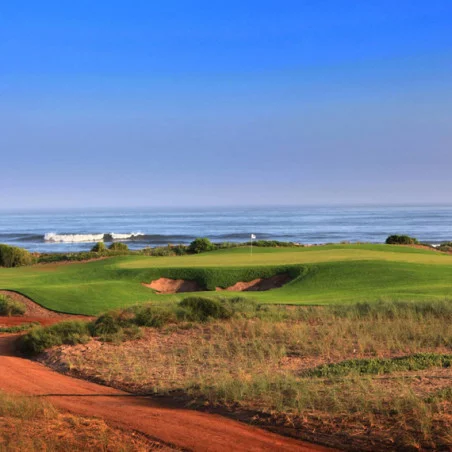 L'un des aspects les plus remarquables du Mazagan est son design, qui permet de jouer au golf tout en étant entouré par la beauté de la nature. Les trois derniers trous du parcours sont particulièrement notables pour leurs vues imprenables sur l’océan, offrant des panoramas spectaculaires qui rendent chaque fin de partie mémorable. Ces trous vous invitent à perfectionner votre swing tout en admirant le spectacle des vagues se brisant contre la côte et le coucher du soleil sur l’horizon marin.
