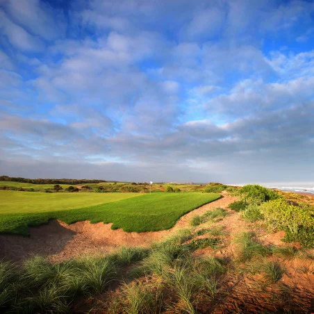 Le parcours se distingue par sa capacité à marier défi technique et beauté naturelle. Il serpente à travers des paysages variés, allant des dunes de sable aux zones herbeuses, avec des vues panoramiques à couper le souffle sur l'océan Atlantique. Les 18 trous du Mazagan Golf Club offrent une variété de défis, allant des longs par 5 aux stratégiques par 3, avec des fairways ondulés, des bunkers bien placés et des greens impeccablement entretenus.