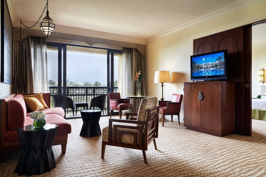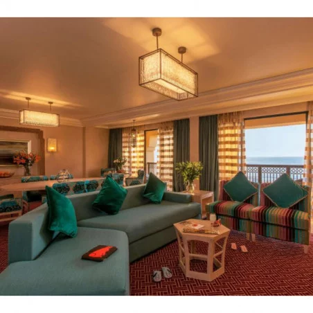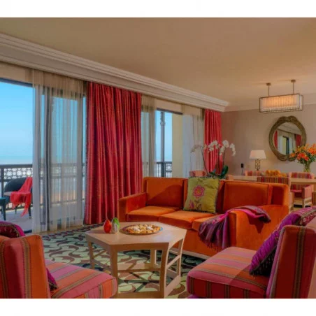 Ces suites spacieuses sont idéales pour les familles ou les groupes qui souhaitent un espace supplémentaire.Elles disposent d’un grand salon séparé, parfait pour se détendre ou recevoir des invités, ainsi que d’un balcon avec vue sur l’océan ou les jardins. Avec des équipements modernes et une décoration marocaine élégante, ces suites offrent un cadre somptueux pour un séjour de luxe.