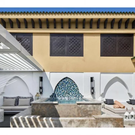 Offrant encore plus d'espace, les suites ambassadeur incluent plusieurs espaces de vie, avec un grand salon, une salle à manger et un balcon. Elles sont décorées avec soin, dans un style marocain raffiné et des touches modernes, créant une ambiance à la fois élégante et accueillante. Elles sont idéales pour les familles nombreuses ou les groupes d’amis, avec des chambres spacieuses et une capacité d’accueil étendue.