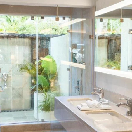 - Grande terrasse privée avec vue panoramique sur l’océan ou les jardins.