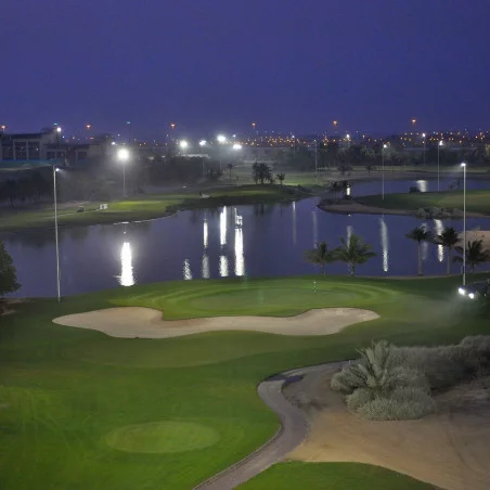 L'un des attraits uniques du Abu Dhabi Golf Club est la possibilité de jouer au golf de nuit sur le parcours national. Les neuf derniers trous, s'étendant sur 3700 mètres, sont entièrement éclairés, permettant aux golfeurs de profiter d'une partie de golf de championnat sous des projecteurs. Le parcours nocturne offre une ambiance captivante, avec des vues imprenables sur le Falcon Clubhouse, magnifiquement éclairé dans le contexte du ciel nocturne. Cette expérience unique permet aux joueurs de découvrir le charme du golf nocturne, offrant une perspective nouvelle et rafraîchissante du jeu.