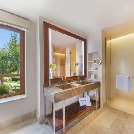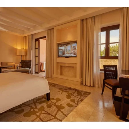 142 chambres et suites décorées dans un style méditerranéen élégant, avec des matériaux naturels tels que le bois et la pierre. Chaque chambre dispose d’une terrasse privée, offrant des vues sur la vallée de Canyamel, les jardins ou la mer. Équipements haut de gamme incluant des lits king-size, des salles de bains en marbre avec douche à effet pluie et baignoire, Wi-Fi gratuit, minibar et produits de bain exclusifs.