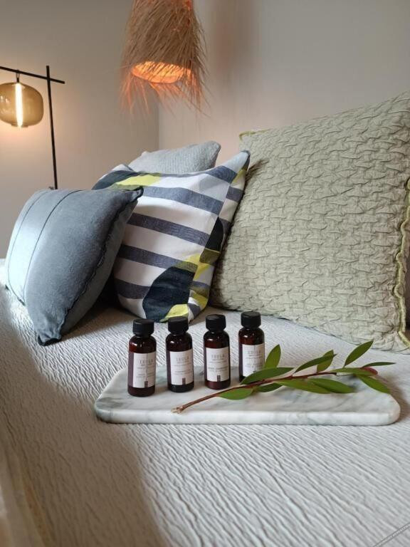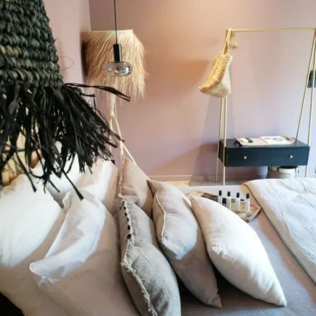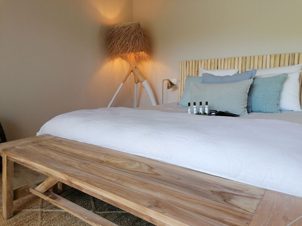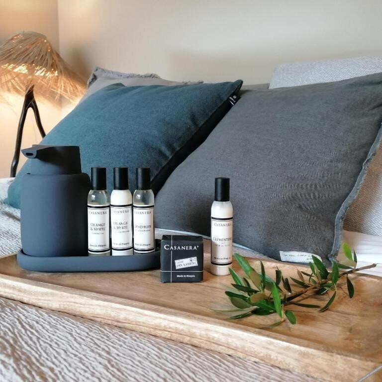 Les suites, d'une superficie de 22 à 42 m², sont décorées avec goût dans des tons neutres, mêlant mobilier contemporain, bois et matériaux naturels. Les salles de bains en béton ciré sont équipées de douches à l'italienne et de produits de toilette de la marque corse Isula. Chaque matin, un petit-déjeuner fait maison avec des produits frais et locaux est déposé devant la porte des suites.