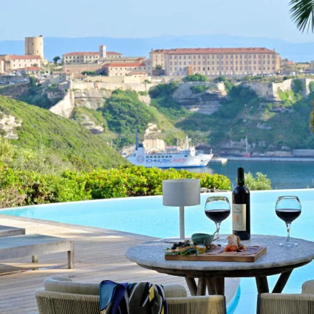 D60 Santamanza, Bonifacio - 20169 - Bonifacio (20169) - Corse du sud - Corse - FranceLes Suites du Maquis est un hôtel 4 étoiles situé à Bonifacio, en Corse du Sud, entre la ville et la baie de Sant'Amanza, à proximité de la plage de Maora. Inauguré en juillet 2020, cet établissement réservé aux adultes propose un concept atypique alliant architecture contemporaine et intégration harmonieuse dans le maquis corse