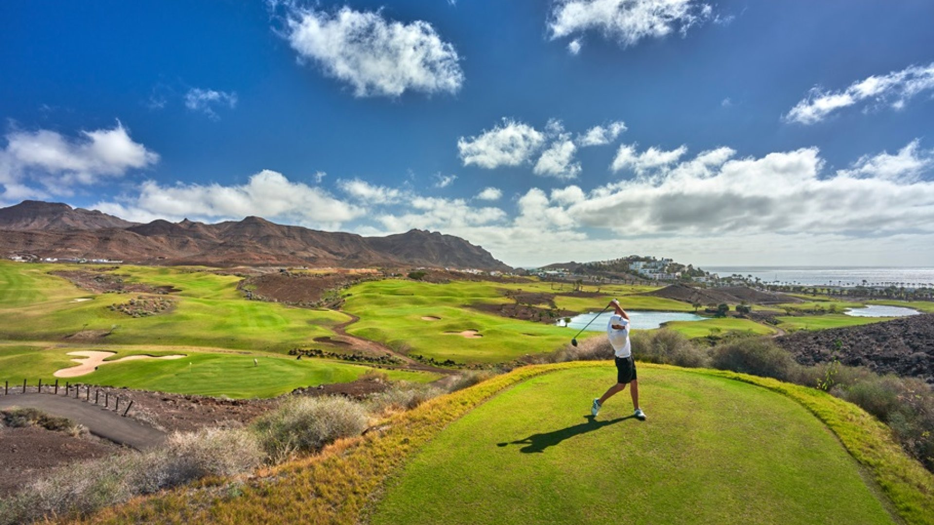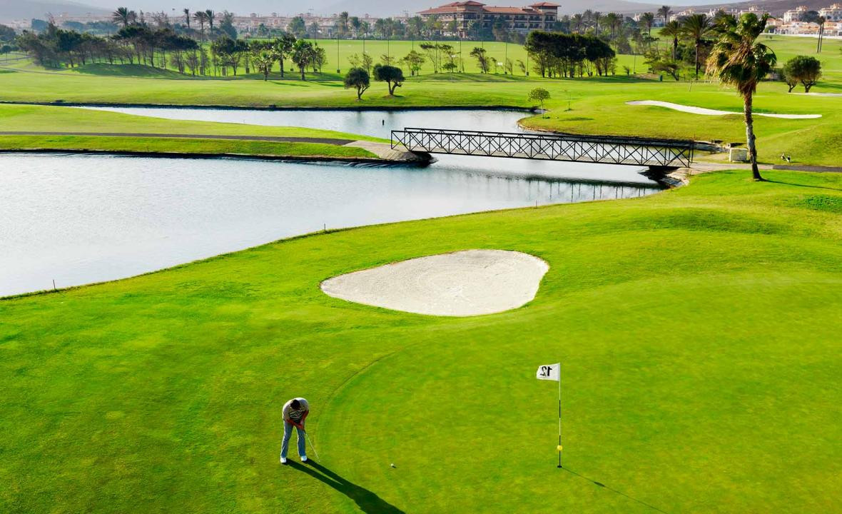 Le parcours de 18 trous du Fuerteventura Golf Club offre un défi passionnant aux golfeurs de tous niveaux. Avec un par de 70 et une distance totale de 6 069 mètres, le parcours est parsemé de trois magnifiques lacs et d'une rivière sinueuse. Les trous 17 et 18 offrent des défis uniques, avec des greens stratégiquement positionnés.