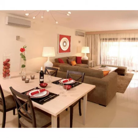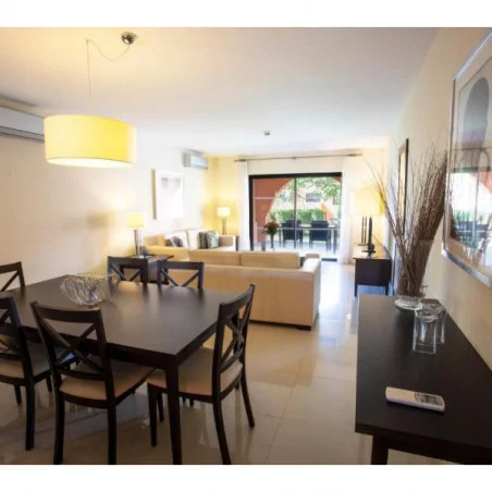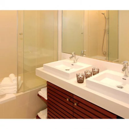 Les appartements, de type T2 (2 chambres), T3 (3 chambres), sont équipés d’un salon avec télévision à écran plat, d’une cuisine entièrement équipée, de salles de bain modernes, et d’un balcon ou d’une terrasse offrant une vue sur les jardins ou les parcours.